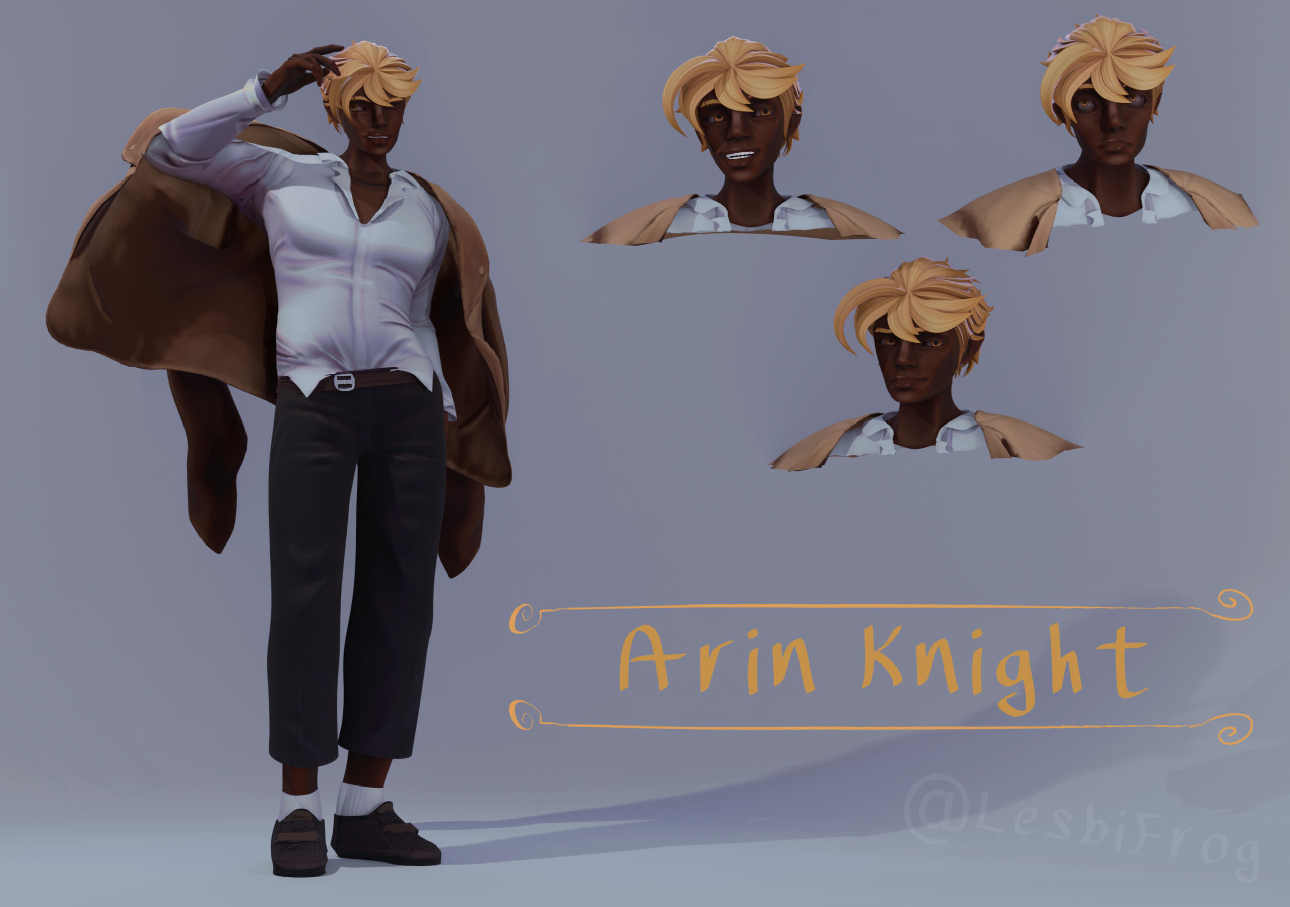 An original character, Arin Knight, one half of the ace detective duo working in the Empyréaux district.Tools and workflow used in this project: