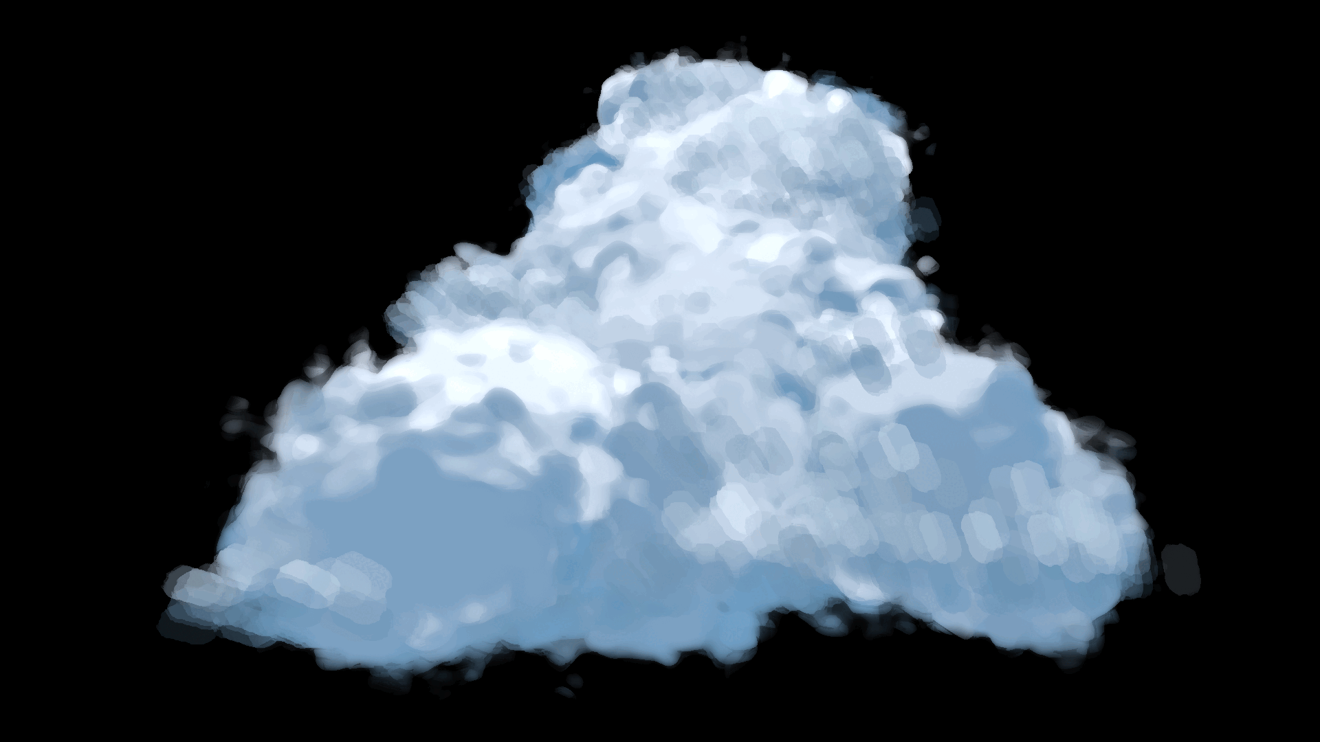 The clouds for this piece were created entirely using a mix of Blender's geometry nodes & shader work to stylistically emulate the painterly clouds of Ghibli.