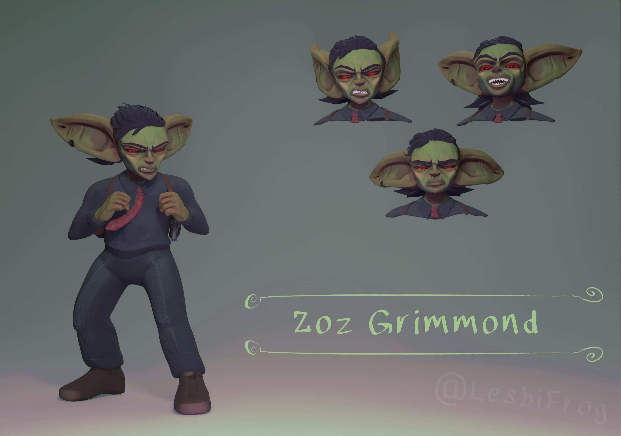 An original character, Zoz Grimmond, one half of the ace detective duo working in the Empyréaux district.Tools and workflow used in this project: